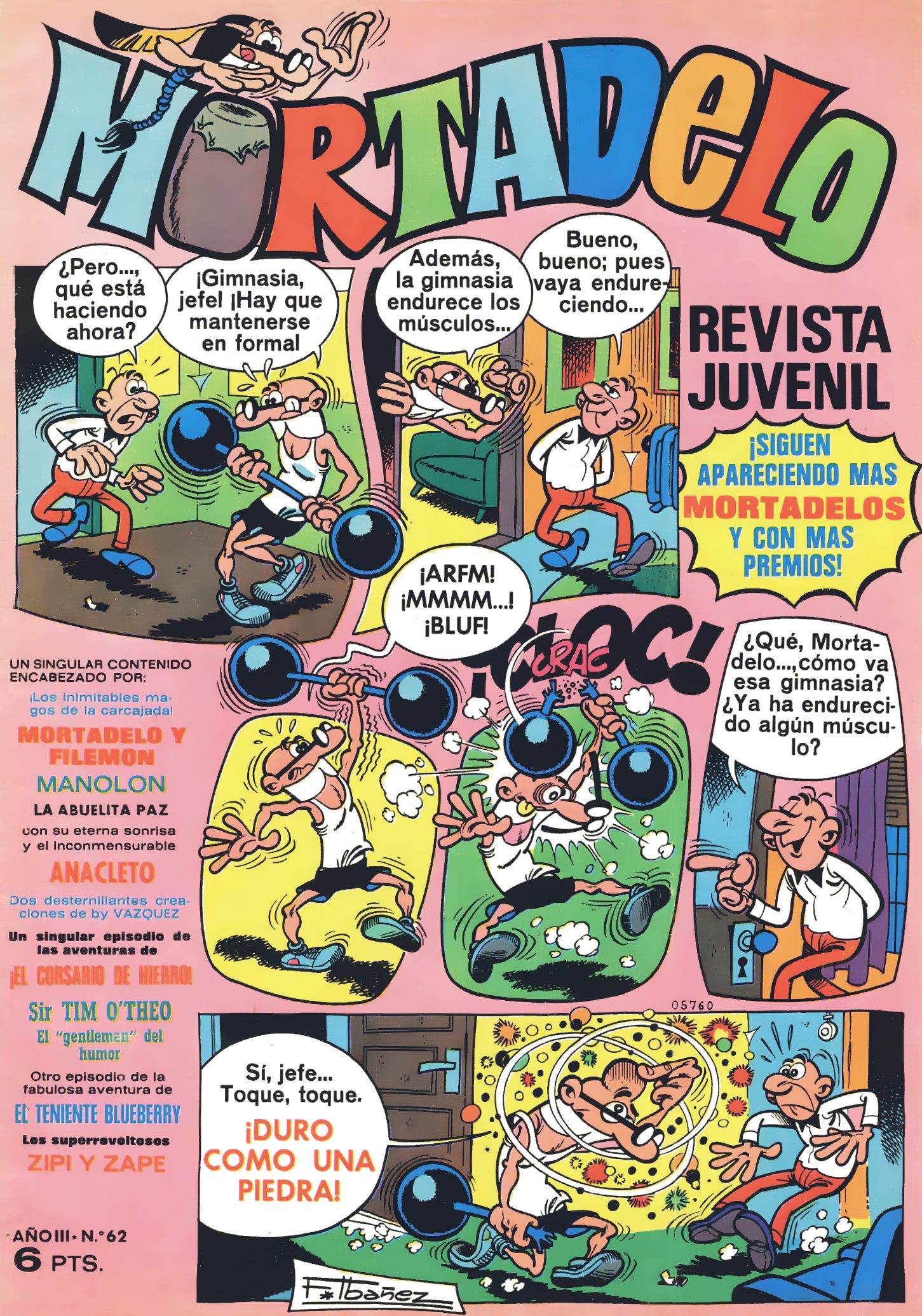 Cuaderno grapado de 32 páginas impresas a color y bitono alternándose este sistema cada dos páginas (Fte: Tebeosfera).