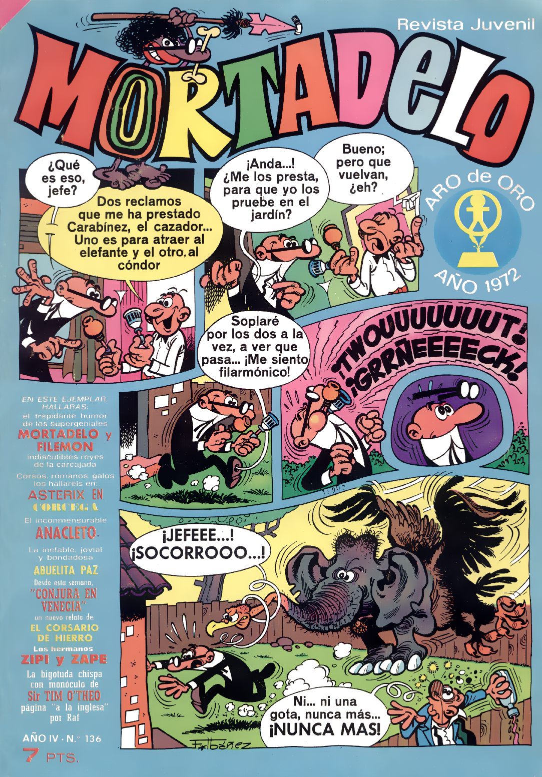 Cuaderno grapado de 32 páginas impresas a color y bitono alternándose este sistema cada dos páginas (Fte: Tebeosfera).