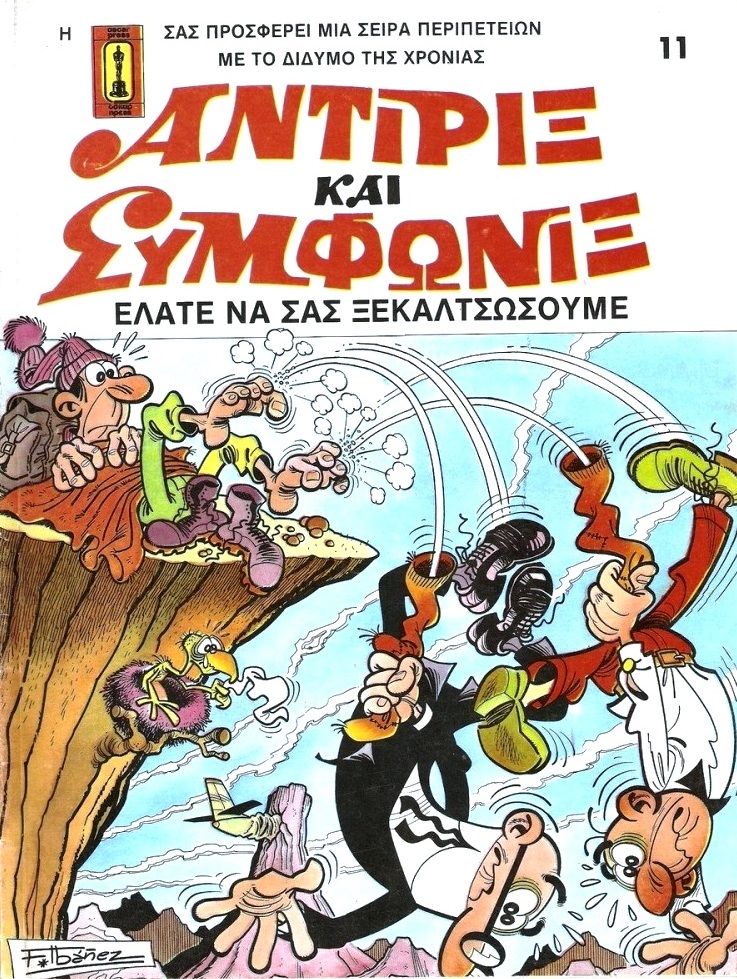 En Grecia las aventuras de Mortadelo y Filemón se publicaron bajo el nombre de "Antirix kai Symphonix", pronunciado Andirix ke Simfonix, y escrito Αντιριξ και Συμφωνιξ. A partir de 1980 la editorial Oscar Press publicó al menos treinta álbumes de la serie original "Ases del Humor". El nombre de los agentes en Grecia viene a significar literalmente algo así como 'El que está de acuerdo y el que no está de acuerdo'.