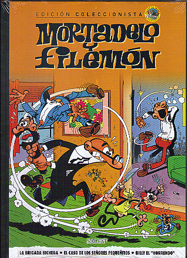 Volumen con tapas de cartoné que incluye tres aventuras largas de Mortadelo y Filemón seleccionadas por Francisco Ibáñez. La colección cuenta con la asesoría de Antoni Guiral. Incluye una biografía de Francisco Ibáñez en las últimas páginas del volumen.