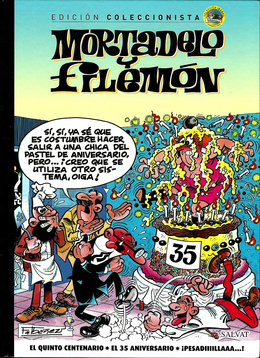 Volumen con tapas de cartoné que incluye tres aventuras largas de Mortadelo y Filemón seleccionadas por Francisco Ibáñez. La colección cuenta con la asesoría de Antoni Guiral. Incluye una biografía de Francisco Ibáñez en las últimas páginas del volumen.