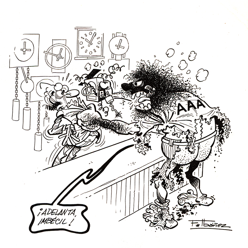 Ilustración de Ibáñez publicada en el Papus de 1977 "Solidaridad con el Papus", un libro a modo de antología editado conjuntamente por 73 editoriales españolas como repulsa por el atentado perpetrado contra la redacción de El Papus el día 20 de septiembre de 1977. Imagen enviada por Androide.