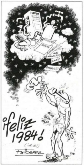 Ilustración de Francisco Ibáñez para Diario de Avisos (30/XII/1983). Compartido por Hediondo a partir del enlace https://www.fundacioncinemascomics.com/50-anos-historieta/.