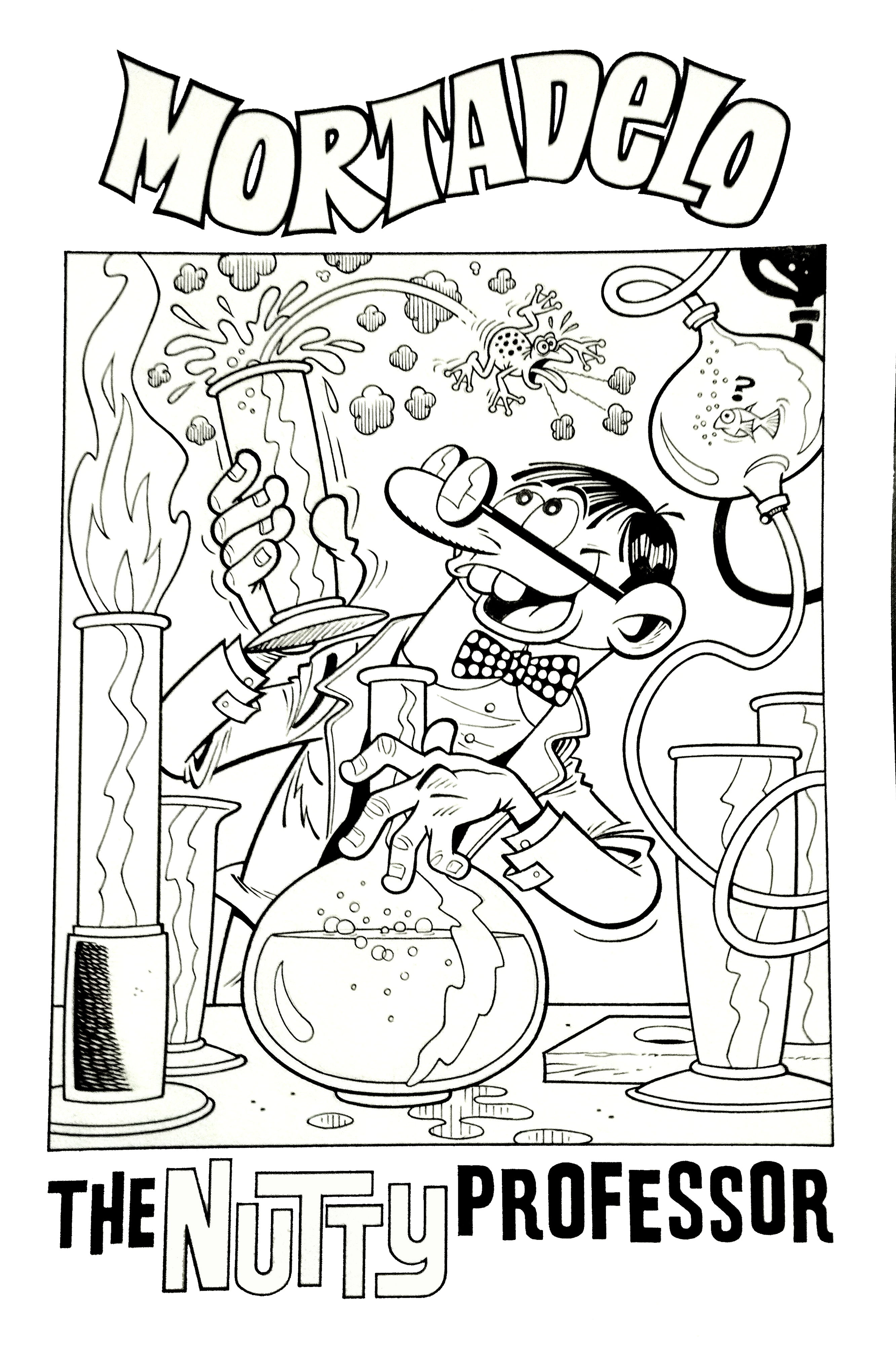 Ilustración de Mortadelo y Filemón ambientada en "El profesor chiflado". Jordi David Redó.