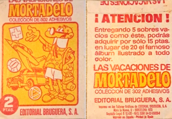 Sobre de cromos "Las vacaciones de Mortadelo" (Bruguera, 1973). Imagen enviada por Lanave.