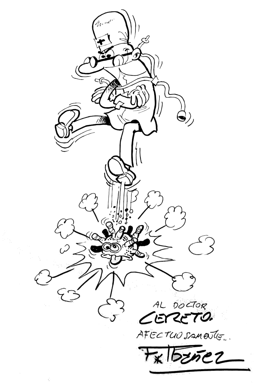 Ilustración de Francisco Ibáñez para su médico el doctor Cereto. Imagen compartida por Chespiro.