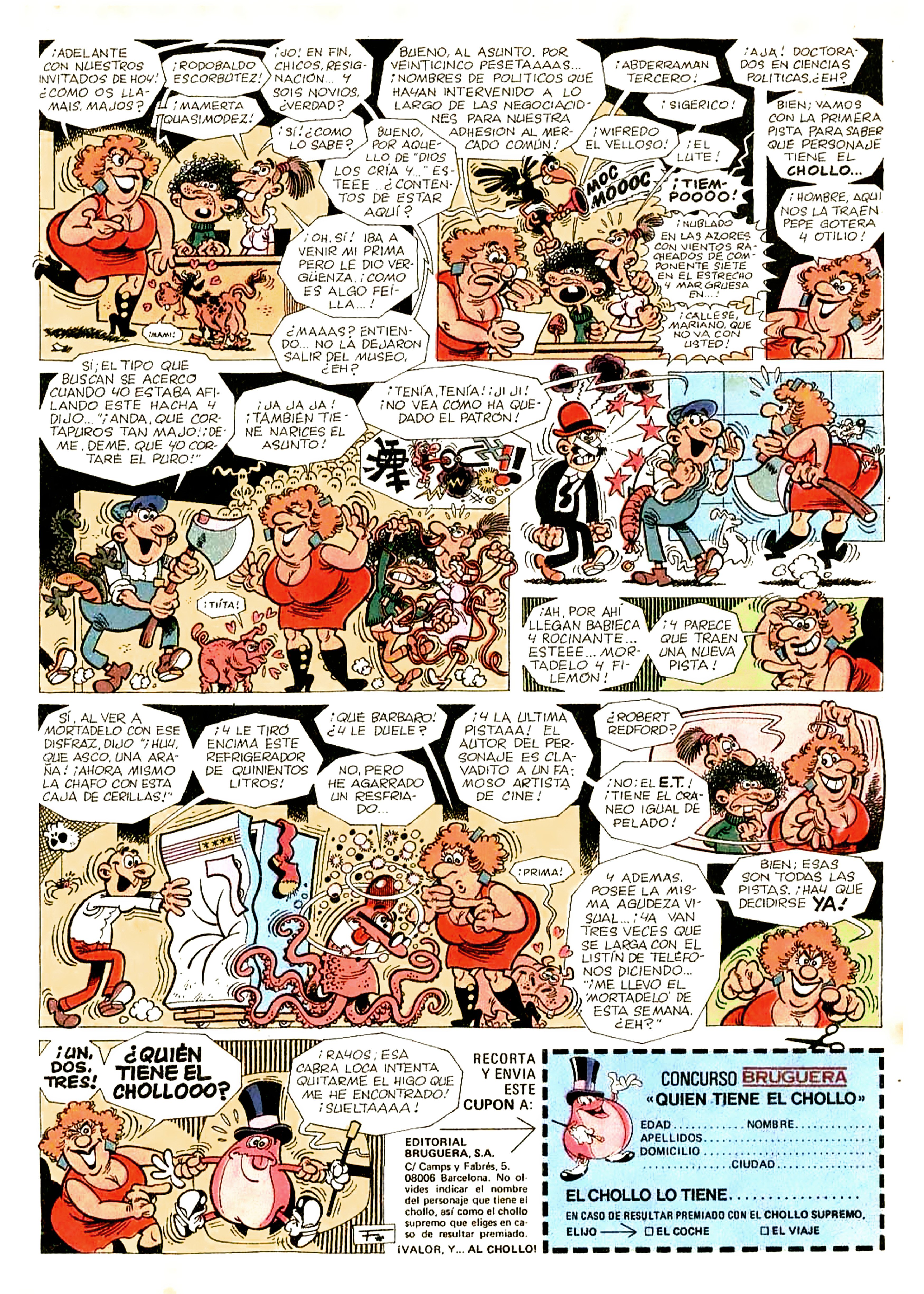 Aventura promocional del concurso de TVE "Un, dos, tres". Personaje que tiene el chollo: "Rompetechos". Publicada en las revistas Mortadelo (2ª etapa) 211, Mortadelo Especial 187, Tio Vivo Extra Humor Blanco (Extra numerado 75).Imaǵenes limpiadas por Libertito Mecha.