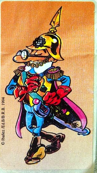 Pegatina de la colección de cromos de disfraces de Mortadelo que regalaban en el interior de los chicles SONRICS.