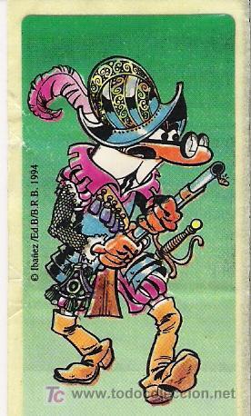Pegatina de la colección de cromos de disfraces de Mortadelo que regalaban en el interior de los chicles SONRICS.