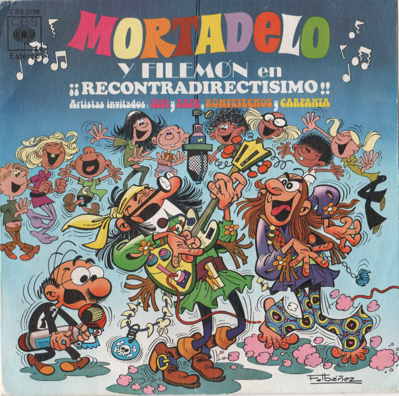 Disco de 1975 en el que "cantan" Mortadelo y Filemón, Rompetechos, Zipi y Zape y Carpanta.