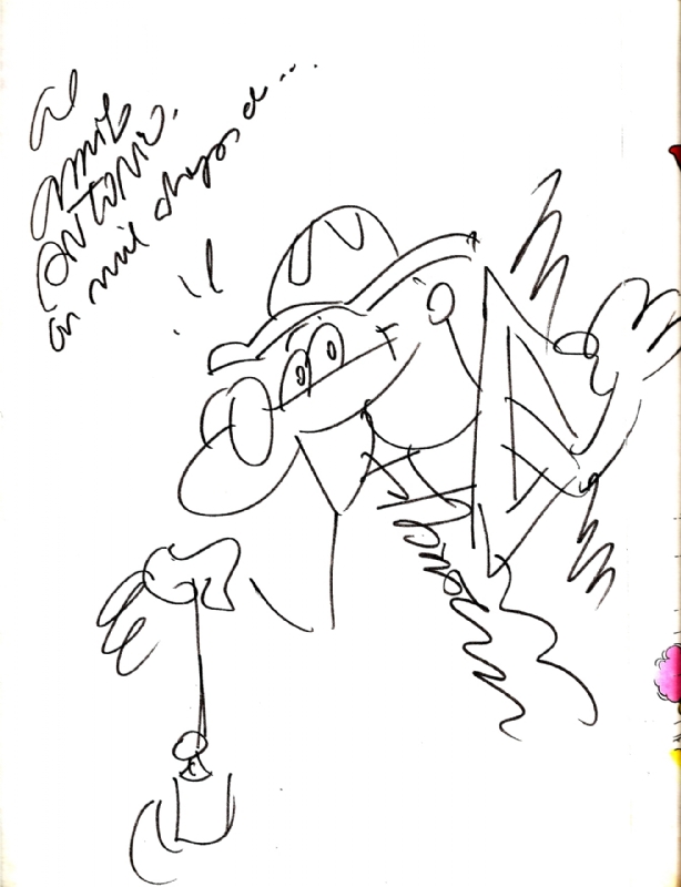 Dedicatoria de Francisco Ibáñez. Mortadelo disfrazado de ingeniero.