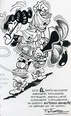 En el año 2005, efeméride de la publicación de El ingenioso hidalgo Don Quijote de la Mancha, la revista Leer dedicó sus páginas a aquellos autores de literatura infantil y juvenil que habían festejado creativamente tan señalada fecha. La publicación tenía dos platos fuertes: una entrevista a Francisco Ibáñez y otra a Antonio Mingote, los cuales se dedicaron sendos dibujos de homenaje. (Fuente: