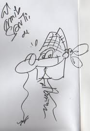 Dedicatoria de Francisco Ibáñez. Mortadelo con un pañuelo en la cabeza.