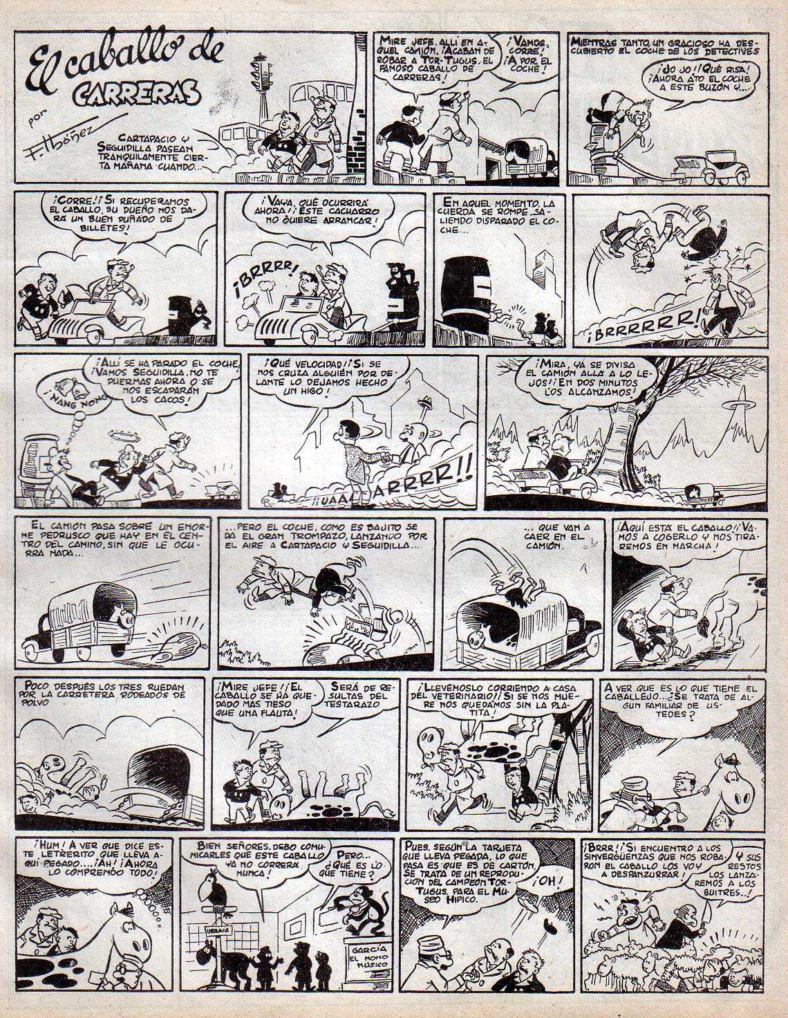 Página cómica de "Cartapacio y Seguidilla". Realizada por Francisco Ibáñez para la revista "La Risa" (nº 93). Imagen cedida por "Dionisio Platel".