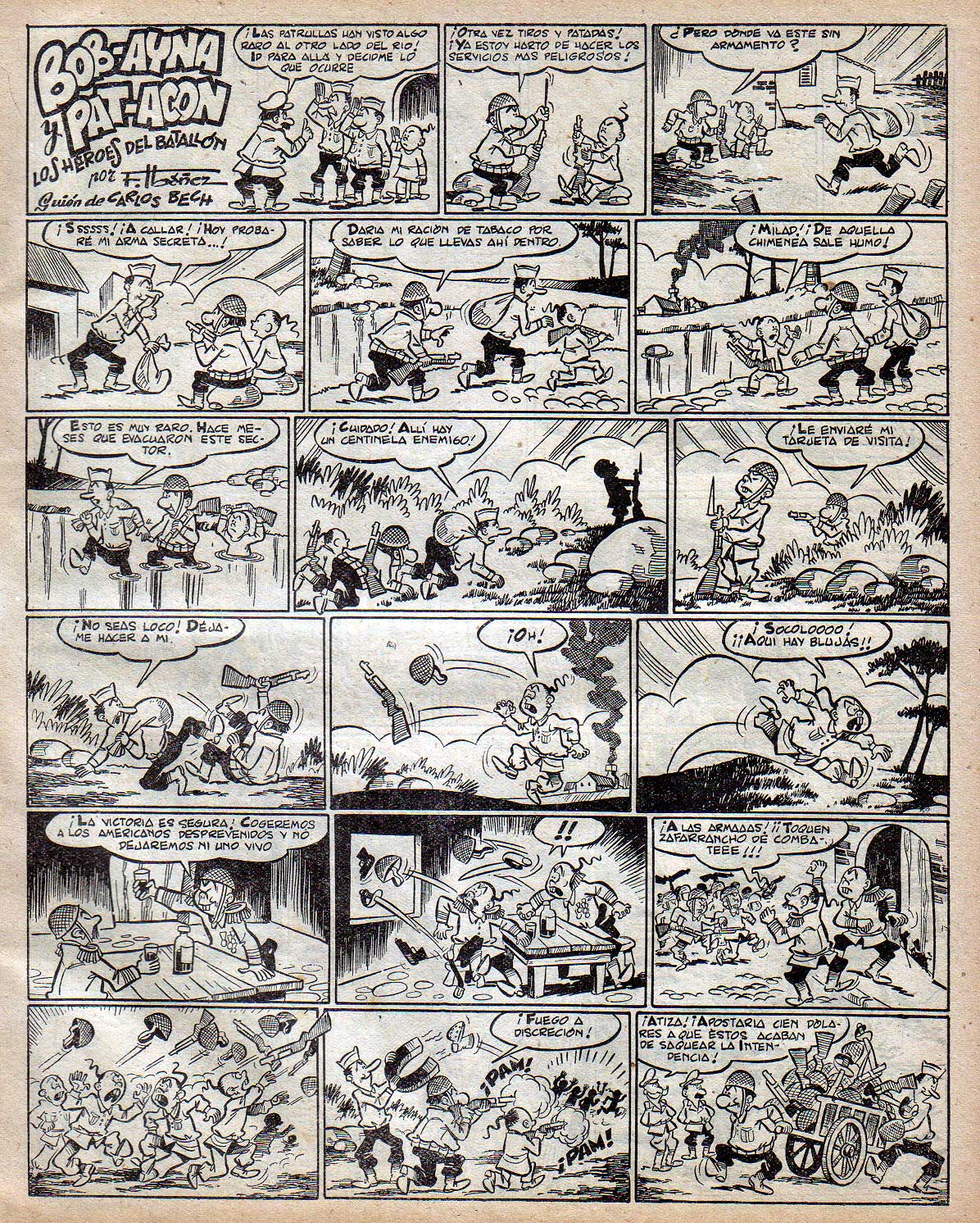 Página cómica de "Bob-Ayna y Pat-Acón". Realizada por Francisco Ibáñez para la revista "La Risa" (nº 100). Imagen cedida por "Dionisio Platel".