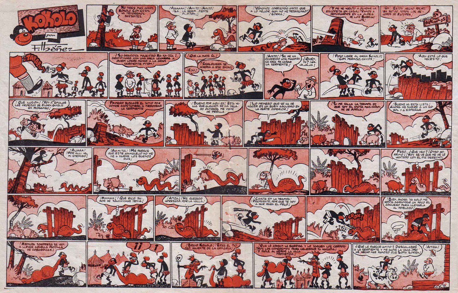 Página cómica de "Kokolo". Realizada por Francisco Ibáñez para la revista "La Risa" (nº 106). Imagen cedida por "Dionisio Platel".