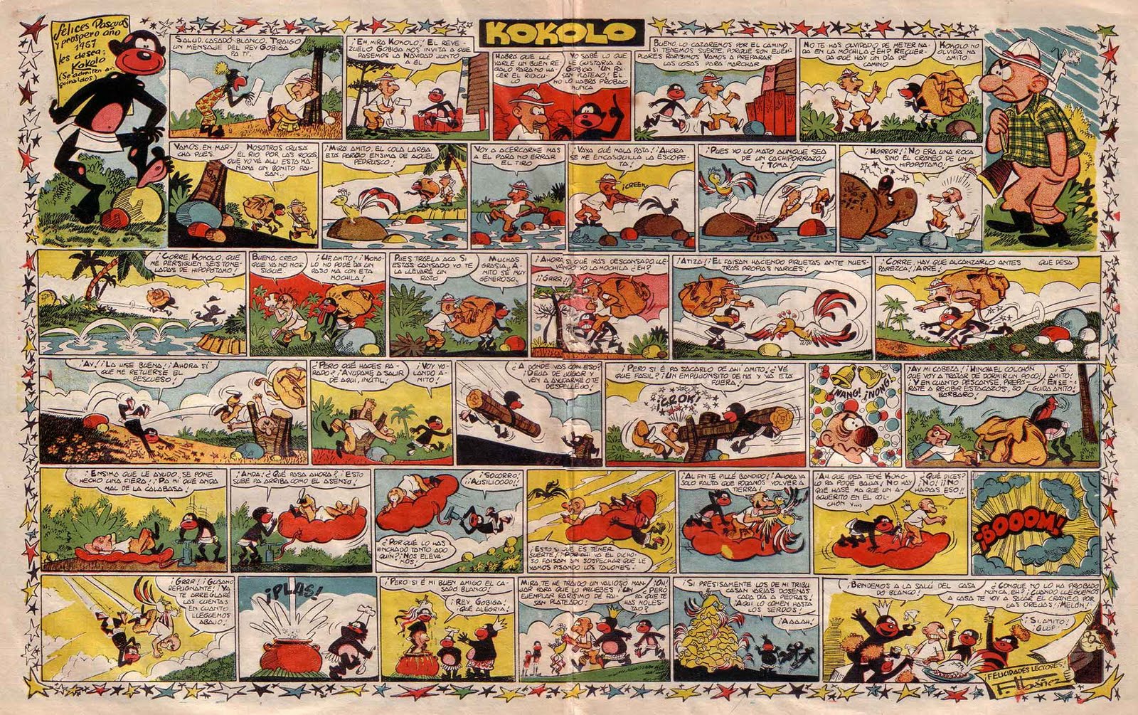 Página cómica de Kokolo. Realizada por Francisco Ibáñez para la revista "La Risa" (Almanaque 1957). Imagen cedida por "Dionisio Platel".