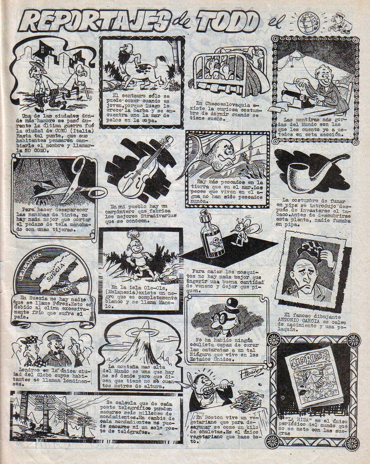 Página de "Reportajes de todo el mundo" en la que colaboró Francisco Ibáñez. Realizada para la revista "La Risa". Imagen cedida por "Dionisio Platel".