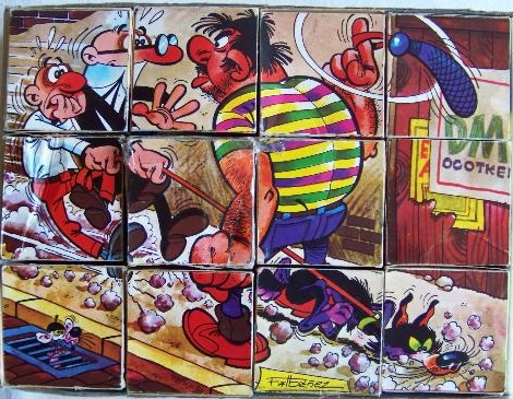 Rompecabezas de Mortadelo y Filemón (de Papirots). Contenido interior del juego. Extraído de un anuncio de Todocolección.