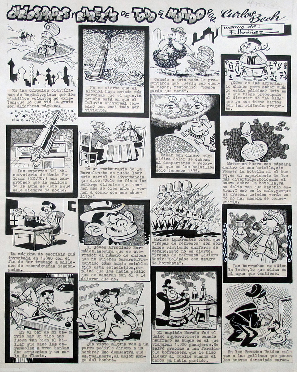 Página de "Curiosidades y rarezas" realizada por Francisco Ibáñez (con guión de Carlos Bech) publicada en la revista "La Risa" (nº por determinar). Imagen extraída de la exposición "Ilustradores ilustres del TBO" y compartida en el foro de la T.I.A. por "La secre de la secre".