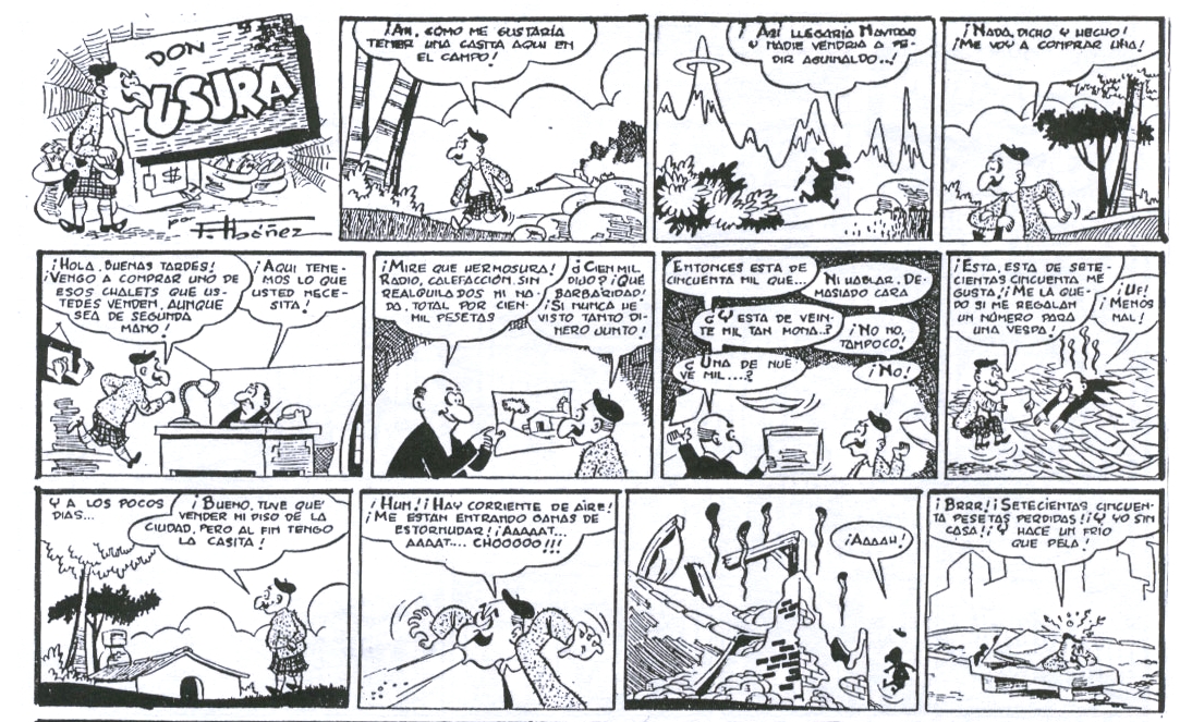 Página cómica de "Don Usura". Realizada por Francisco Ibáñez para la revista "La Risa" (nº 79, 1955). Imagen extraída del fanzine "Héroes de papel" enviado por Pitufo Palomo.