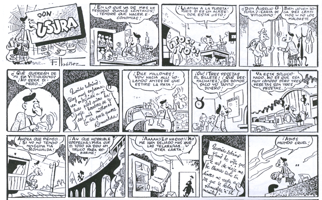 Página cómica de "Don Usura". Realizada por Francisco Ibáñez para la revista "La Risa" (nº 80, 1955). Imagen extraída del fanzine "Héroes de papel" enviado por Pitufo Palomo.