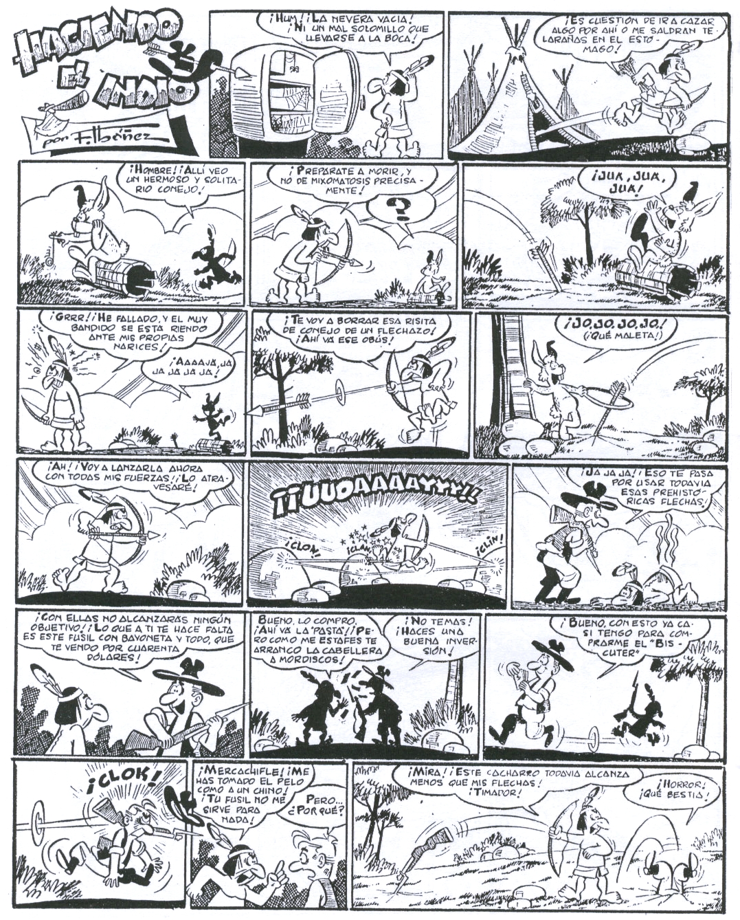 Aventura de "Haciendo el indio" realizada por Francisco Ibáñez para la revista "La Risa" (nº 112, 1955). Página extraída del fanzine "Héroes de papel" enviado por Pitufo Palomo.