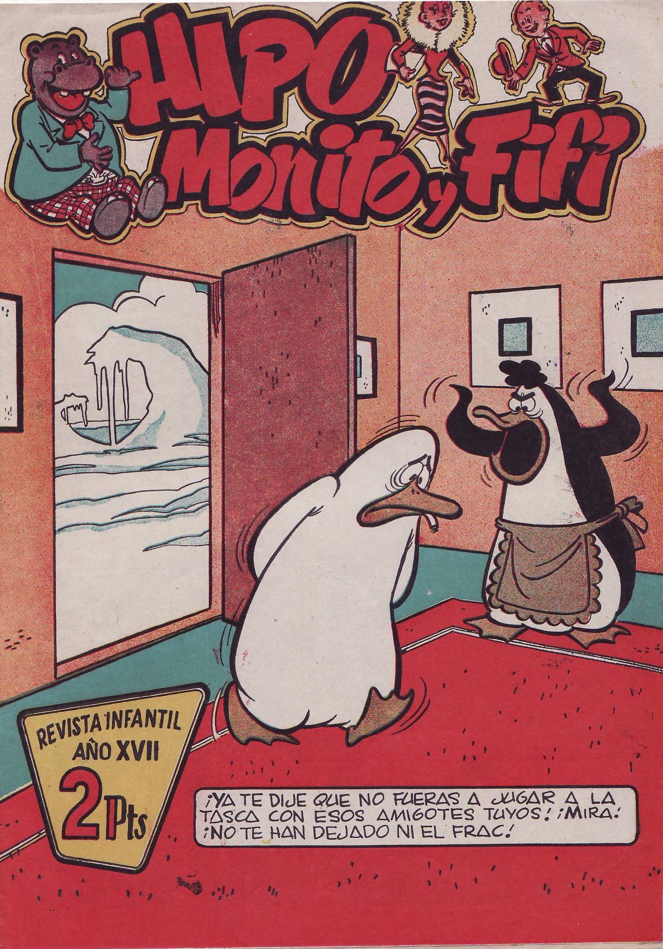 Portada publicada en el nº 2 de la revista "Hipo, Monito y Fifí" (tercera época) en 1958. Extraída del CRG (compartida por Tonimmn).