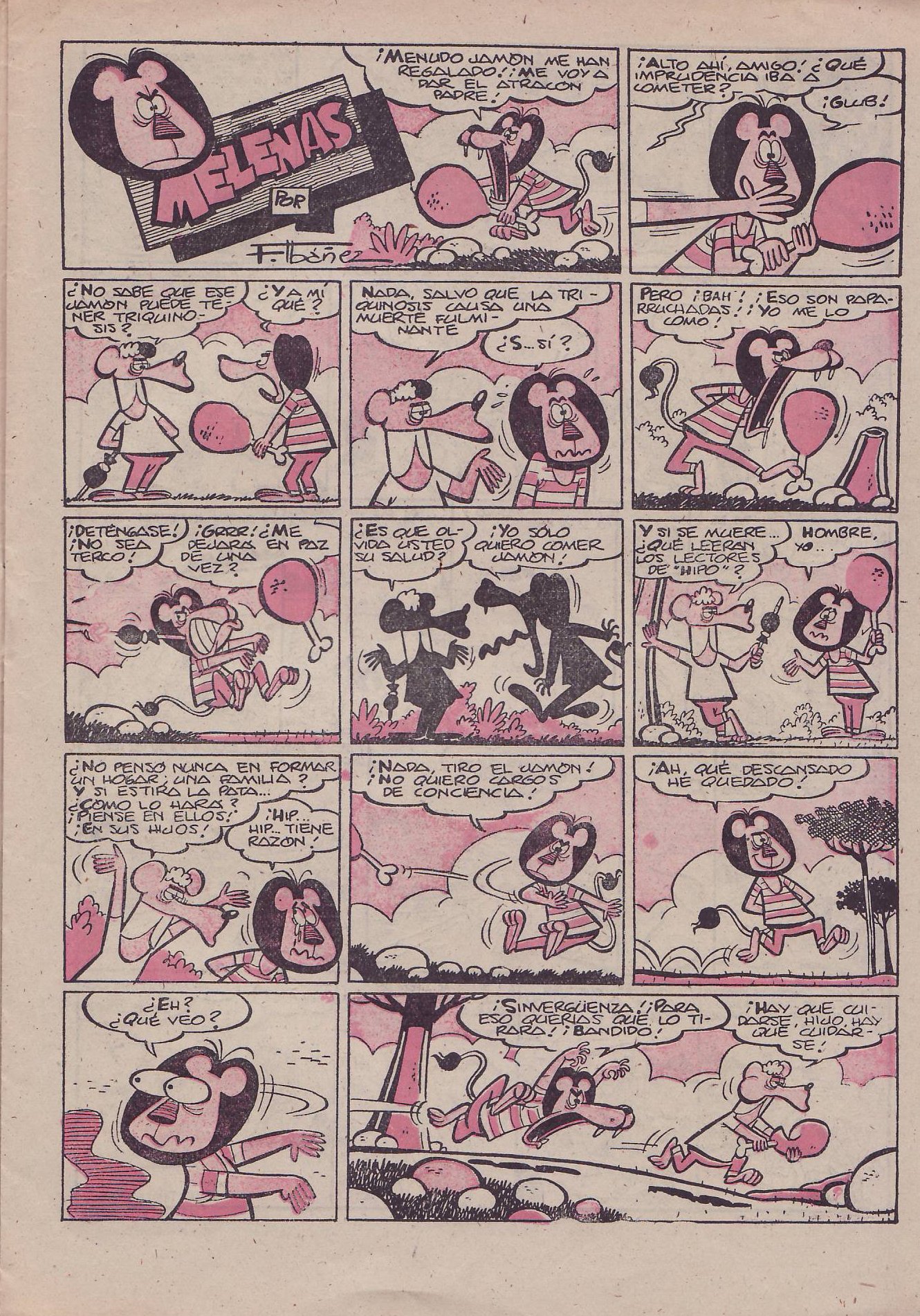 "Melenas". Tira publicada en el nº 3 de la revista "Hipo, Monito y Fifí" (tercera época) en 1958. Extraída del CRG (compartida por Tonimmn).