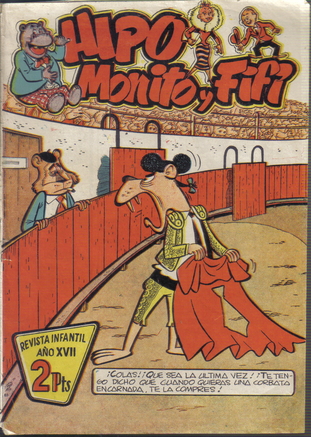 Portada publicada en el nº 4 de la revista "Hipo, Monito y Fifí" (tercera época) en 1958. Extraída del CRG (compartida por Tonimmn).