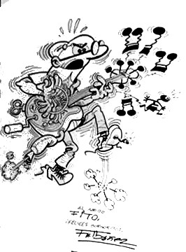 Ilustración de Mortadelo disfrazado de Fito (dedicada al propio Fito). Original de Francisco Ibáñez.