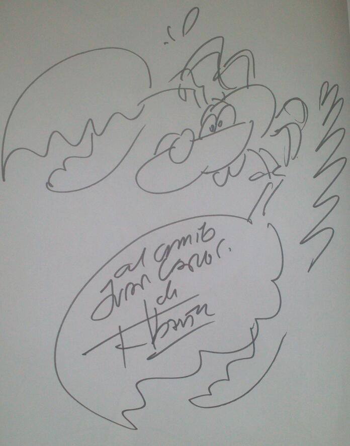 Dedicatoria de Francisco Ibáñez. Mortadelo disfrazado de cangrejo. Imagen enviada por Raflus.