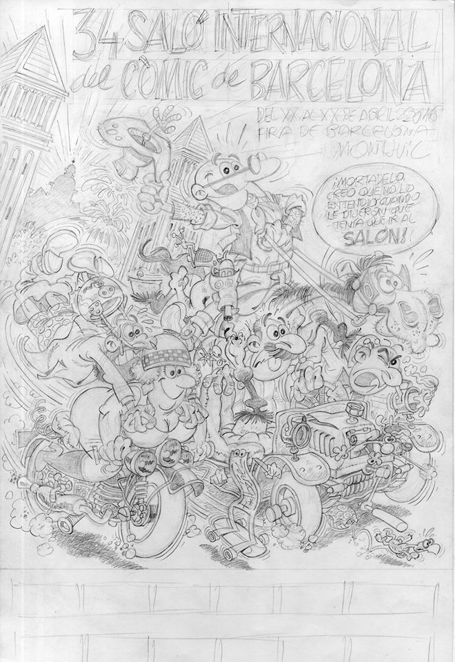 Boceto del póster realizado por Ibáñez con motivo del 34º Saló de Barcelona. Compartido por
