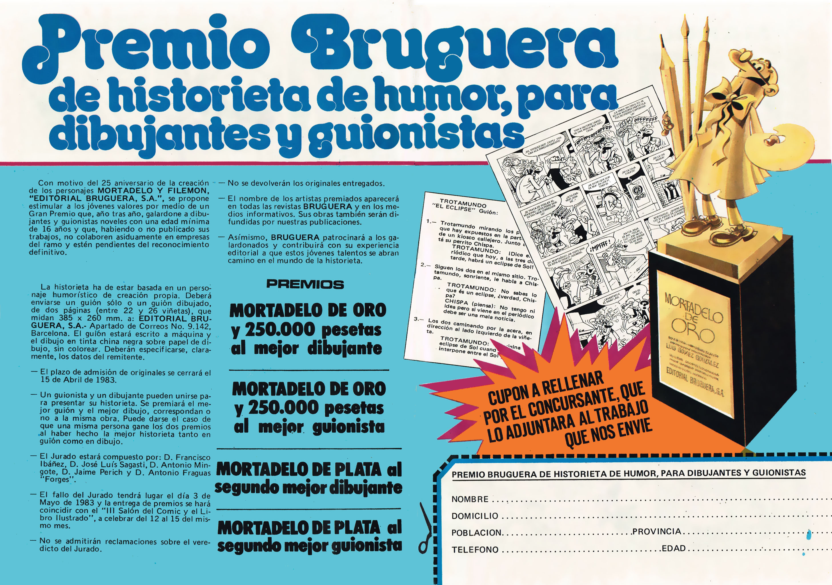 Anuncio de los "PREMIOS MORTADELO HISTORIETA DEL HUMOR" publicado en la revista "Super Mortadelo" (de Bruguera) nº 150. Imagen enviada por