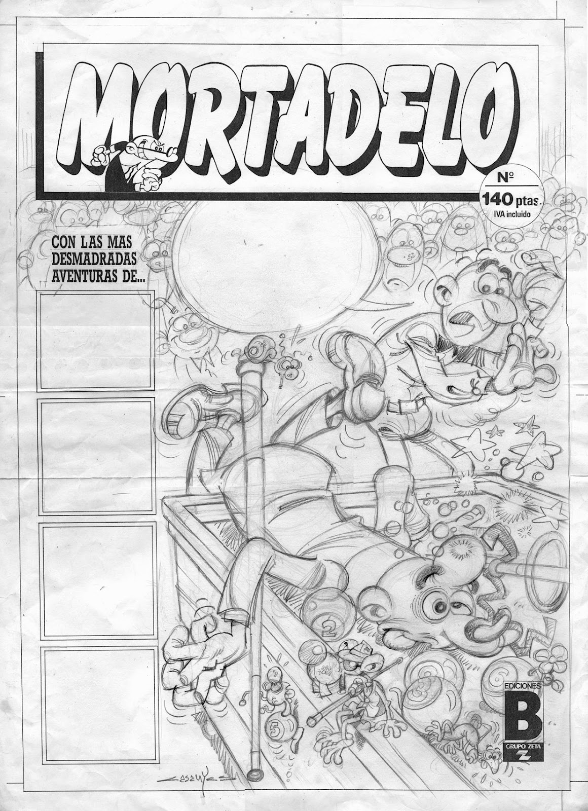 Boceto para la portada de la revista Mortadelo Ed. B nº 45. Enviado por el propio