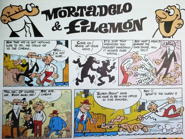 Fragmento de una página de Mortadelo y Filemón en inglés publicada en la revista "I love English" en 1990. Imagen compartida por Snert.