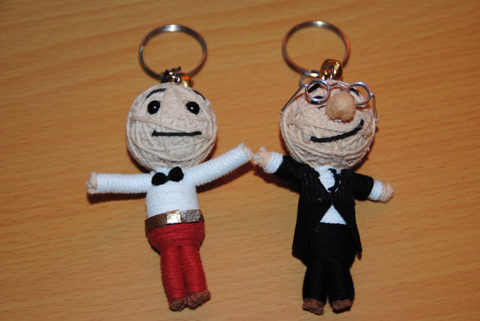 Llaveros artesanales de Mortadelo y Filemón realizados con lana. Imágenes tomadas del blog "