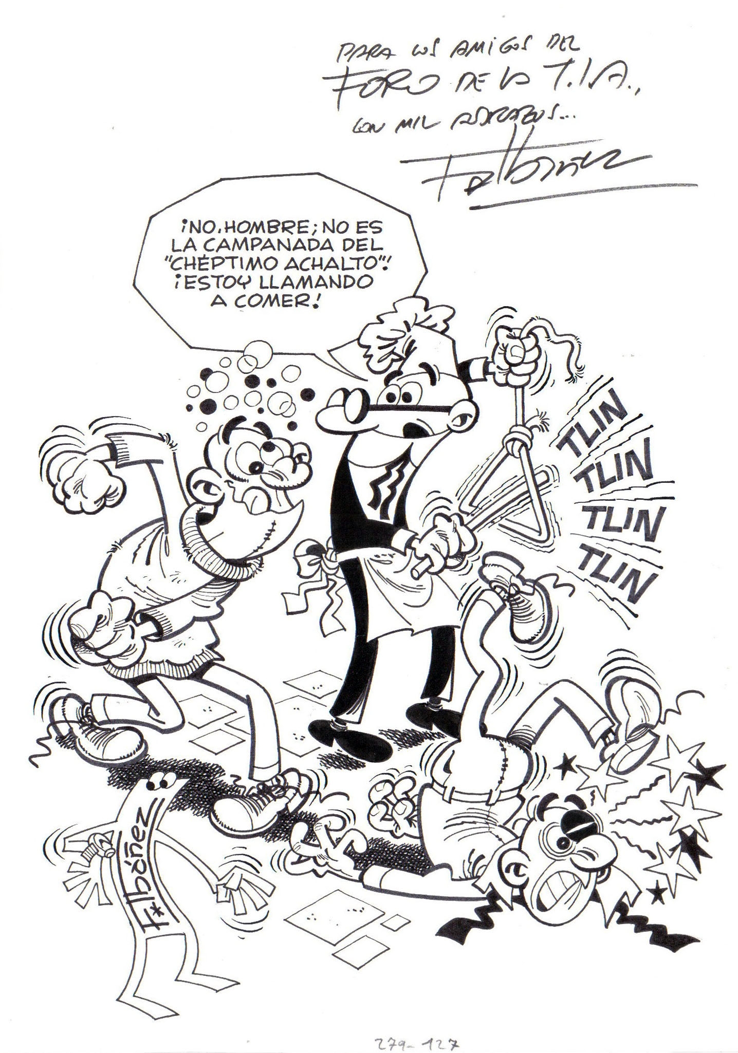 Portadilla original de la aventura "Sydney 2000" realizada para la colección "Magos del Humor" y dedicada expresamente por Francisco Ibáñez para "El foro de la T.I.A." por mediación de Manuel de Cos. Imagen compartida por ase62 y retocada por Hergest.