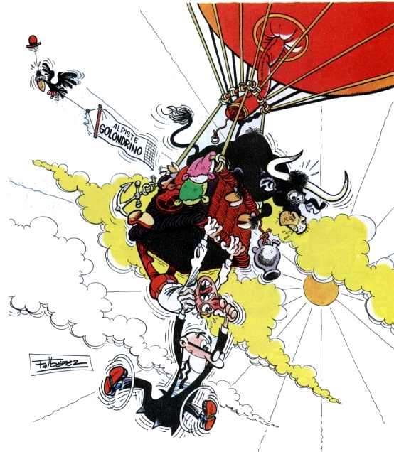 Ilustración para la contraportada de la aventura "Valor... ¡y al toro!" publicada en la colección "Magos del Humor".