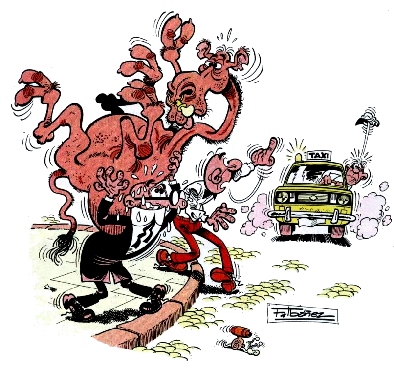 Ilustración para la contraportada de la aventura "Safari Callejero" publicada en la colección "Magos del Humor".